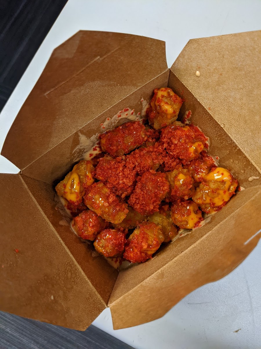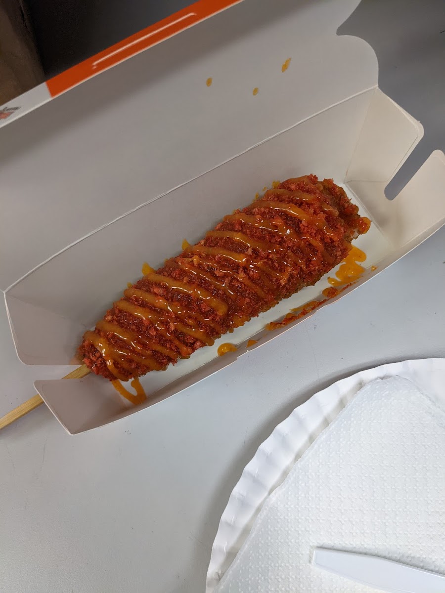 But the allure doesn’t stop there. The potato dog, recommended by enthusiasts like Tanner, is another testament to the creativity bursting from this kitchen. A fan-favorite is their half dog - half mozzarella option, allowing you to experience the best of both worlds. Additionally, the dirty tater tots topped with “secret sauce” and Flamin’ Hot Cheetos dust offer a crunchy, flavor-packed side that perfectly complements the corndogs.